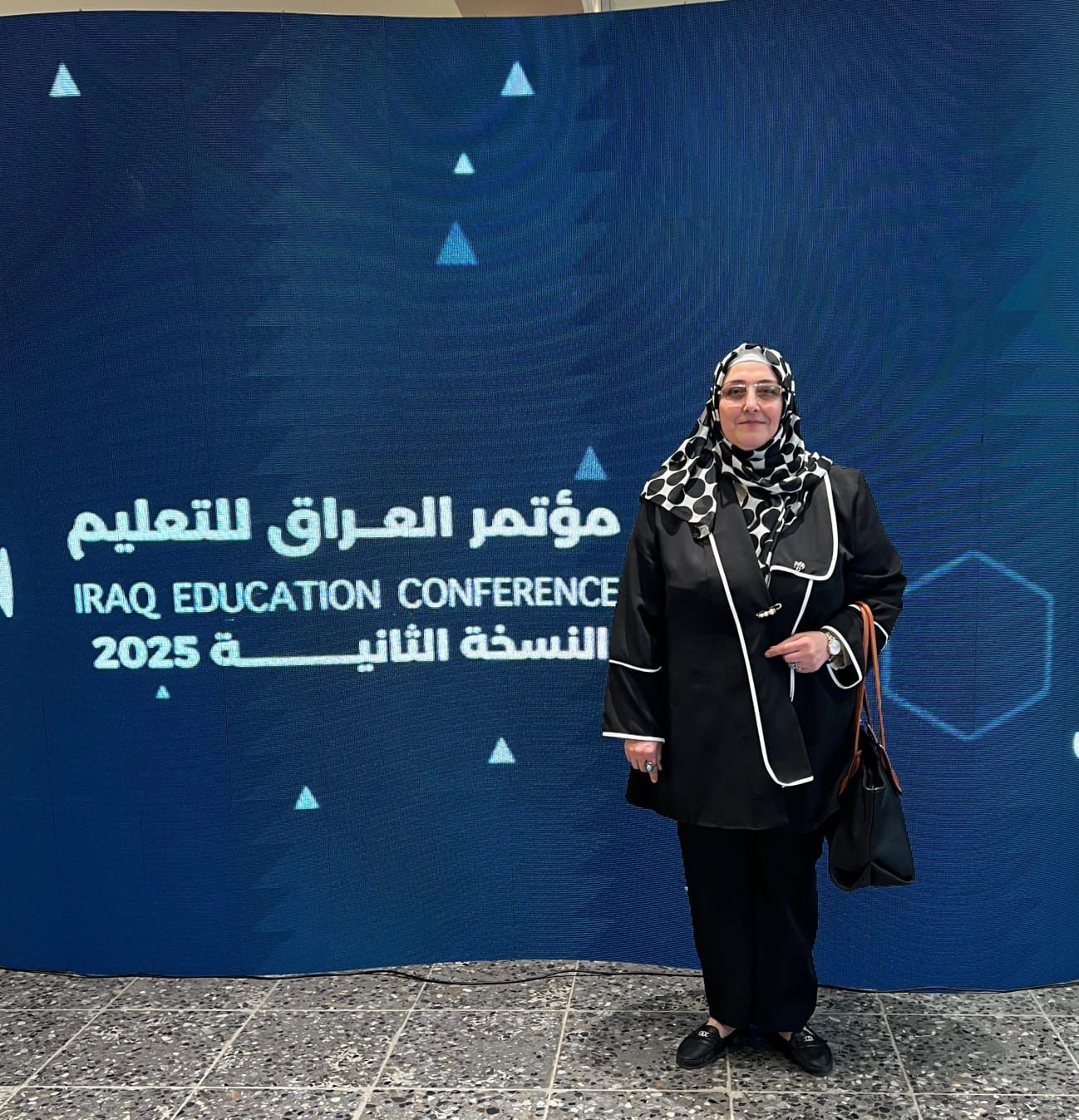 Prof. Dr. Asmaa Mohammed Salih took part in the 2nd Iraq Education Conference, organized by the Ministry of Higher Education and Scientific Research under the supervision of Dr. Naeem Al-Aboudi, the esteemed minister of Higher Education and scientific research. Held at University of Baghdad from October 11-13, 2025, the conference explored key topics such as digital transformation in higher education, global rankings, international research partnerships, and education’s role in sustainable development. By participating, Dr. Asmaa contributed to the exchange of academic experiences and the development of education strategies in Iraq, aligning with global trends. This event reflects the Institute of Laser for Postgraduate Studies’ commitment to promoting academic excellence and research visibility for its faculty members, both nationally and internationally.