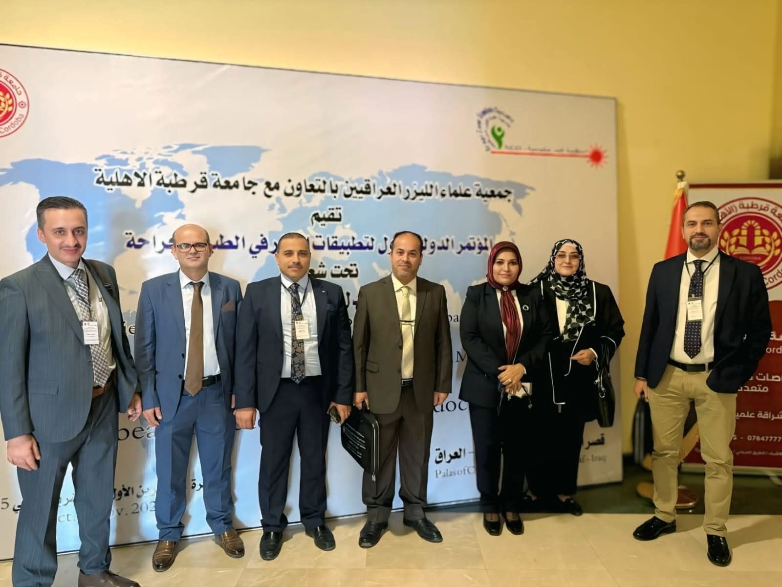 Faculty members from the Institute of Laser for Postgraduate Studies at University of Baghdad, Prof. Dr. Asmaa M. Salih and Asst. Prof. Dr. Layla M. Hassan, participated in the First International Conference on Laser Applications in Medicine and Surgery, organized by the Iraqi Laser Society in cooperation with Qurtuba University, held at the Cultural Palace in Najaf. Dr. Layla M. Hassan presented two scientific papers: