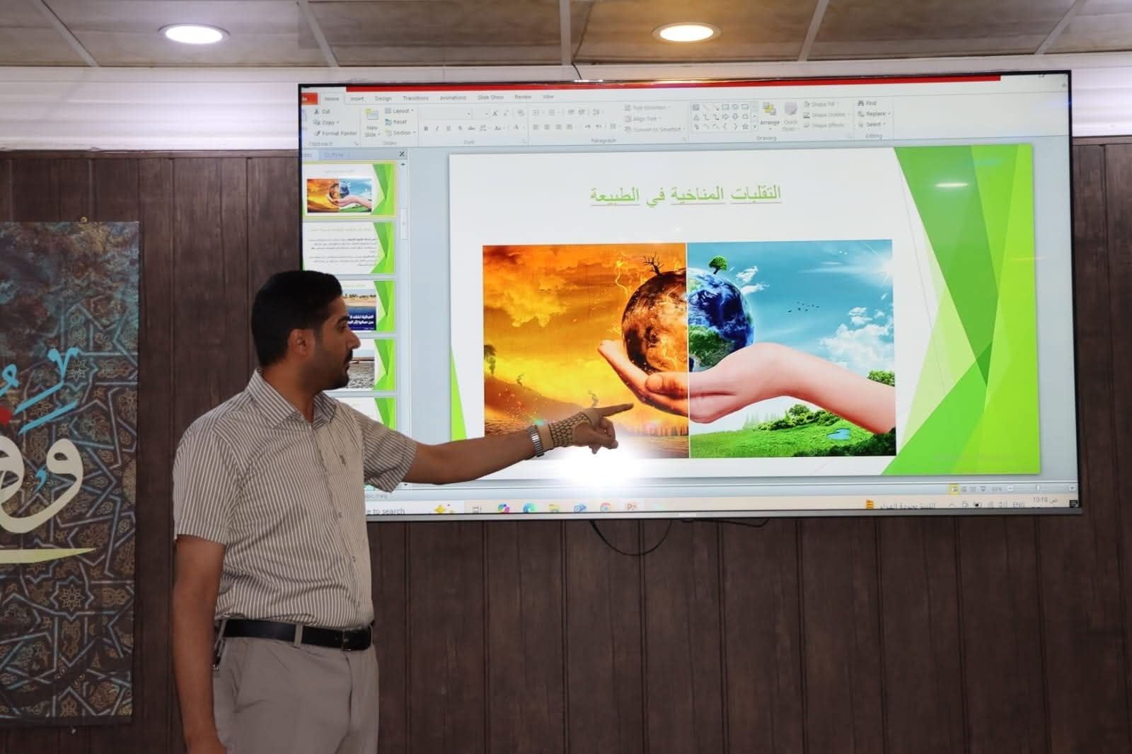 Under the auspices of Prof. Dr. Kadhim A. Adem, Dean of the Institute of Laser for Postgraduate Studies at University of Baghdad, the Continuing Education Unit in collaboration with the Training and Employment Unit at the Institute organized a scientific symposium entitled “Climate Change and Its Impact on Water Consumption in Iraq”. The symposium was attended by the Assistant Dean, Dr. Saif Aqeel, and a number of faculty members and employees. The lecture was delivered by Asst. Lecturer Ali S. Ahmed, a faculty member at the Institute, who discussed the impact of climate change on water resources in Iraq and the accompanying challenges in water management, agriculture, and daily use. The lecturer emphasized the need for national policies to adapt to climate change and optimize water consumption through modern technologies. At the end of the symposium, the Dean praised the scientific efforts made in preparing and organizing the event and presented a certificate of appreciation to the lecturer in recognition of his contribution to enriching knowledge on one of the important environmental issues facing Iraq.